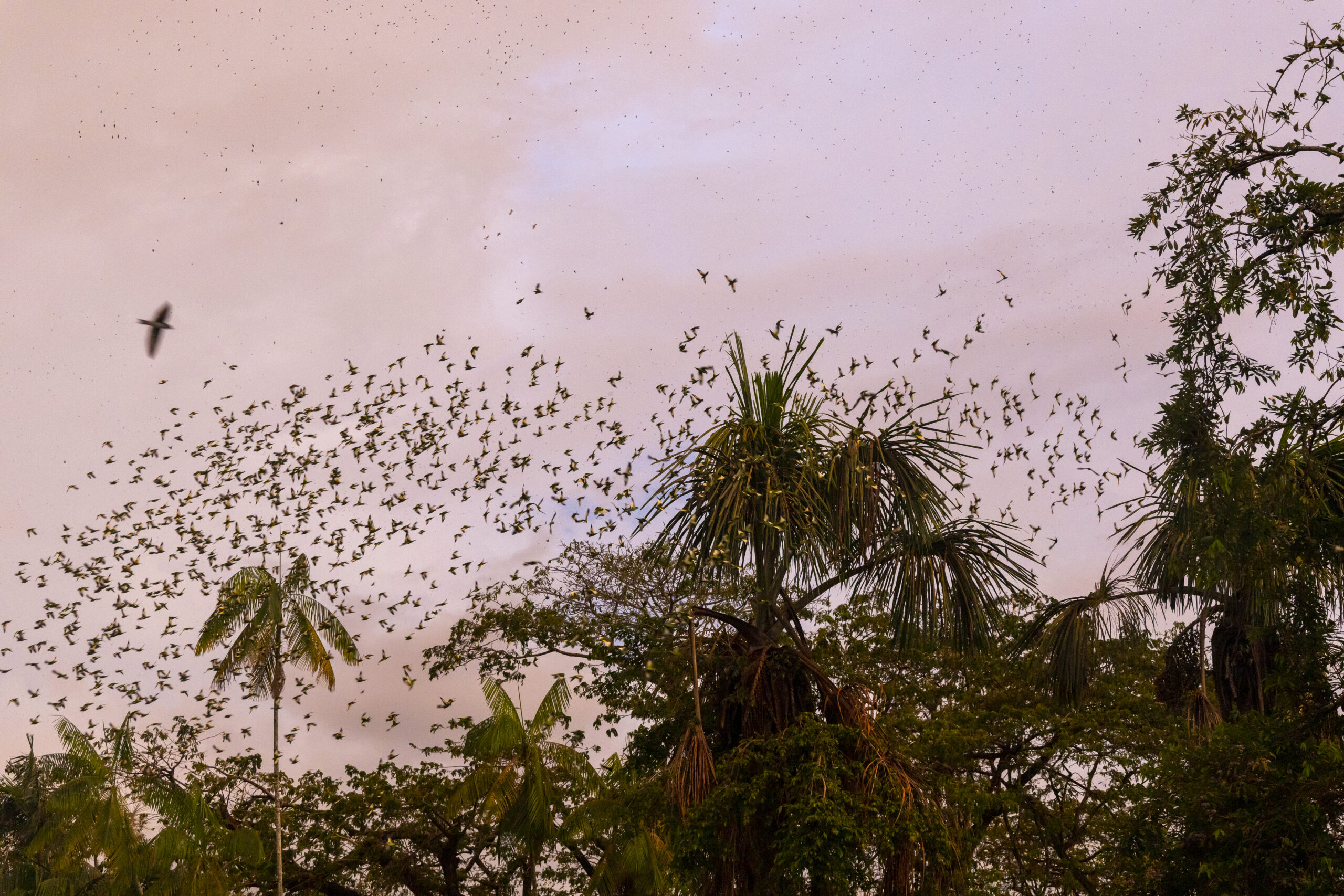 Rainforest cities move like symphonies composed of coexisting systems, where urban environments intertwine with vast masses of green woven along rivers and cultural landscapes. The forest’s colossal presence sets the pace of life, while making space for a multitude of life forms to take shape. You notice the sound of water running in the background, the hum of a passing insect, the rush of beating wings. But also boat motors approaching, dogs barking at motorcycles, music floating in from all directions, and people making plans to meet after the rain stops or when the sun cools down. Yet more often, what reaches you is not a collection of individual notes, but a single, intricate composition: a living harmony shaped by the interplay of countless species at once. Scientists see these layered sounds as communication networks that reveal how species survive and ecosystems thrive.